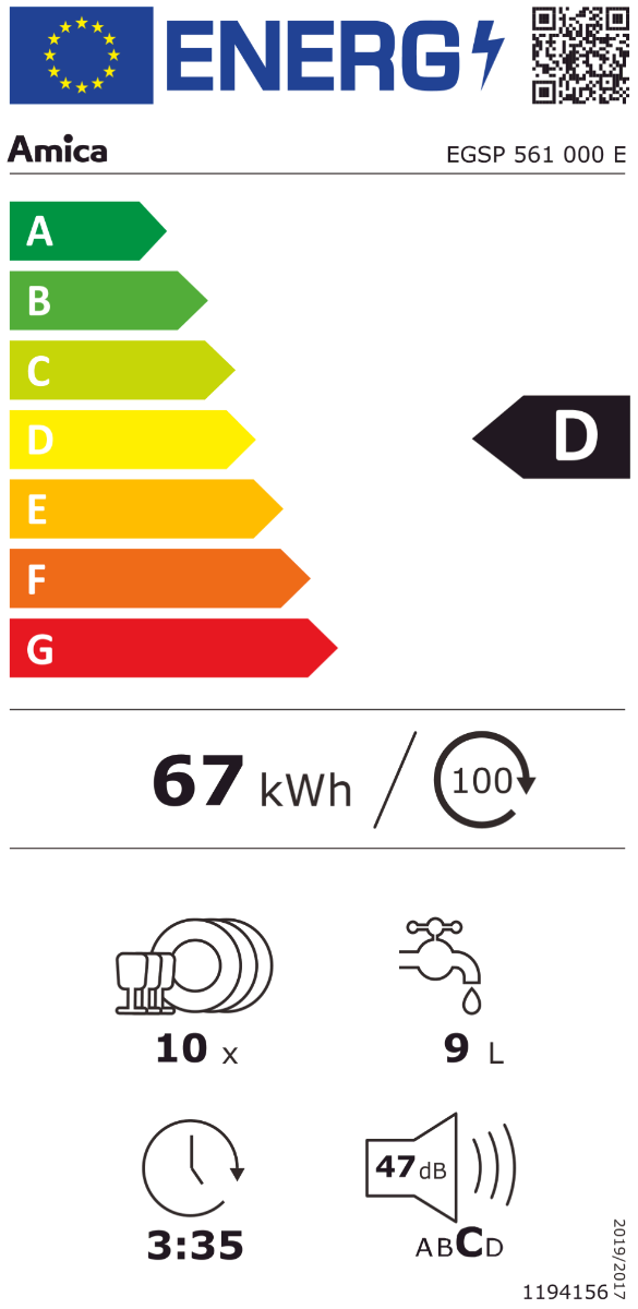Energieverbrauch eco/100 Zyklen (kWh)67