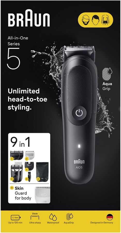 - Grenzenloses Styling von Kopf bis Fuß: Das 11-in-1 All-in-One Set von Braun enthält ausgewählte Tools zum Trimmen des Barts, zum Haareschneiden und Bodygrooming