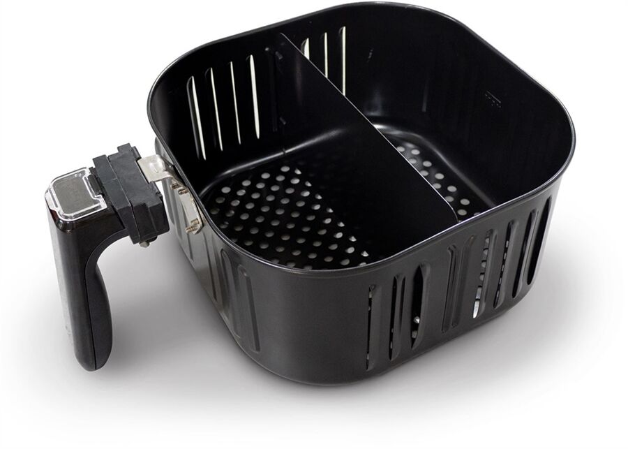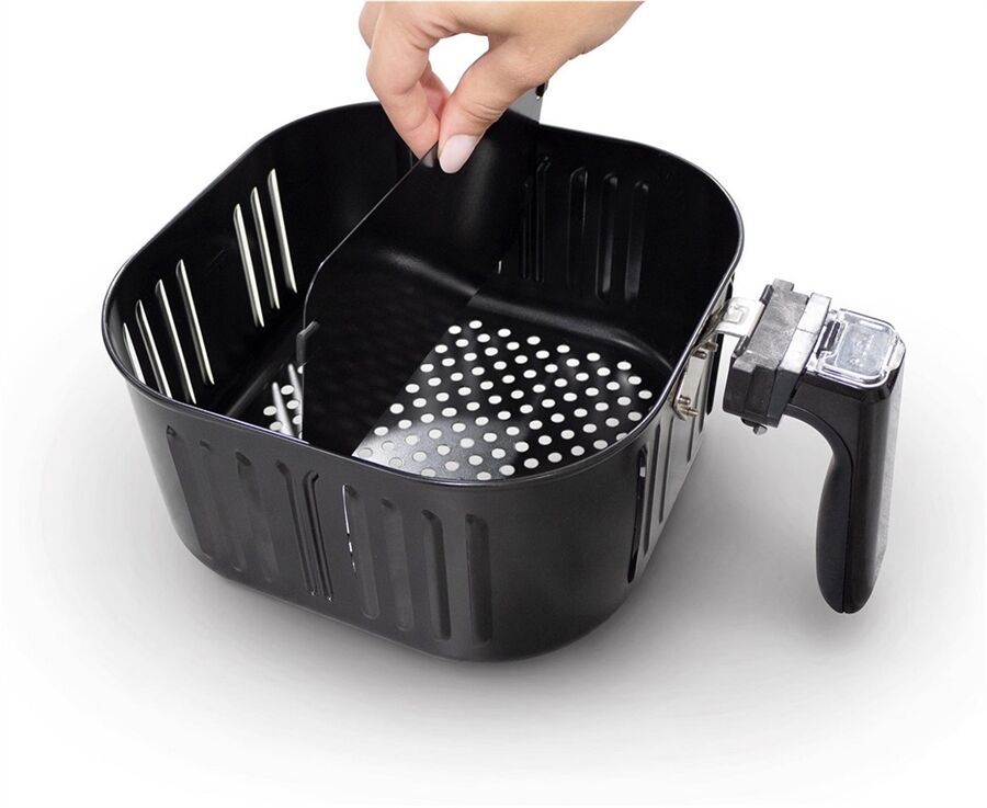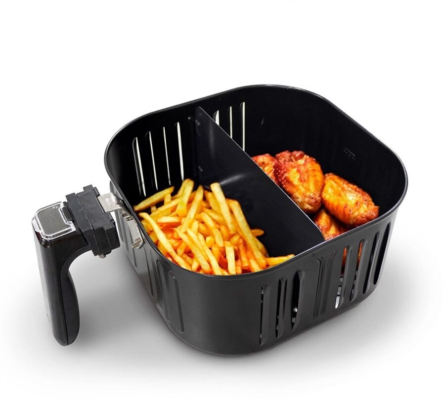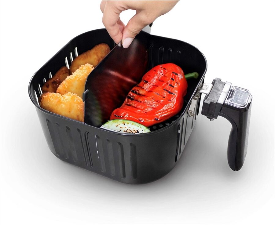 - Moderne XL-Heißluftfritteuse mit extra großem Korbvolumen von 6 l inkl. Duplex-Trennwand – auch für große Portionen z. B. ein ganzes Grillhähnchen und bis zu 1,2 kg Pommes