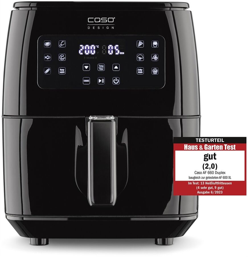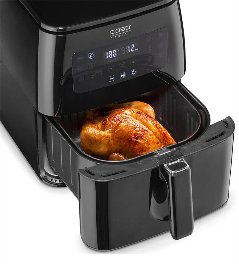 - SHAKE-Reminder – für gleichmäßige und extra knusprige Ergebnisse, sichere Entnahme der Speisen dank Cool-Touch Griff und rutschfesten Füßen