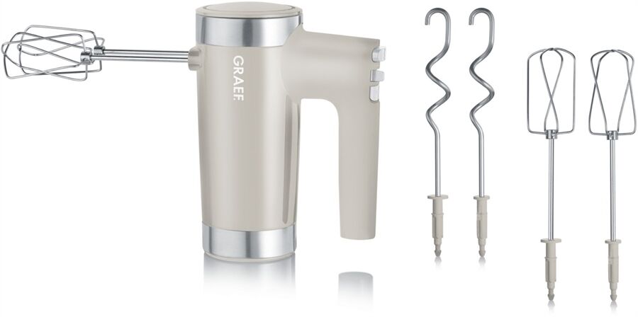 - Auch für tiefe Schüsseln: 2 extra lange Knethaken & 4 extra lange Rührbesen