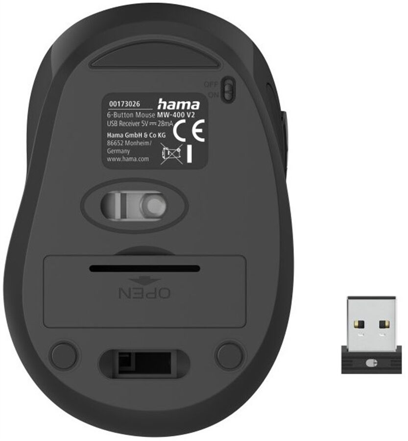 - Verstaubarer USB-Empfänger kann platzsparend im Mausgehäuse transportiert werden