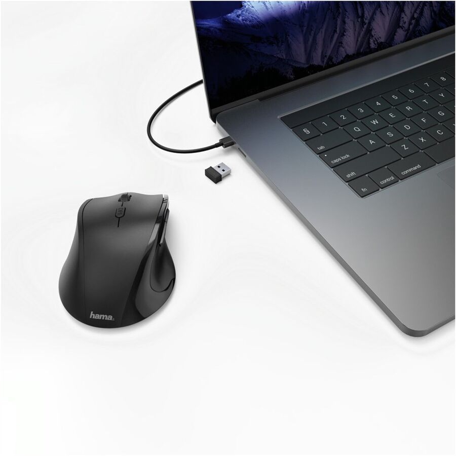 - Verstaubarer USB-Empfänger kann platzsparend im Mausgehäuse transportiert werden