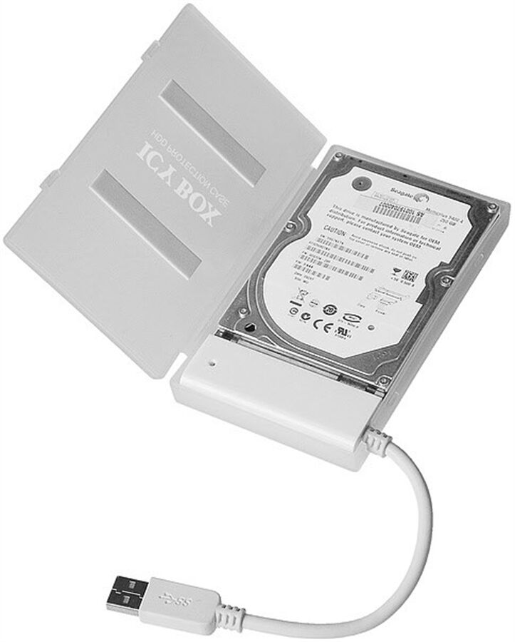 ICY BOX IB-AC603a-U3 für eine 2,5" SATA Festplatte besteht aus einem Adapter SATA auf USB 3.0 inkl. Stromversorgung und einem Kunststoffgehäuse. Man kann beide einzeln oder gemeinsam nutzen. Mit dem Adapter kann die Festplatte direkt an einen Rechner, Mediaplayer oder Ähnliches angeschlossenwerden. Die Kunststoffbox nimmt bei Einsatz der Festplatte außer dieser auch den Adapter auf.Sonst dient sie zur staubgeschützten Lagerung einer 2,5" Festplatte.