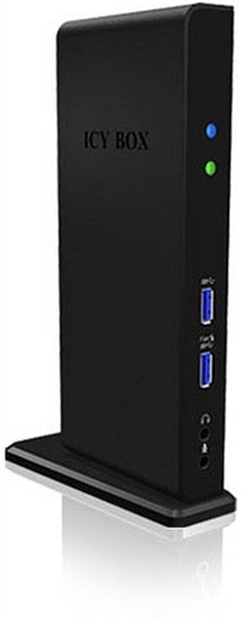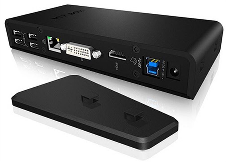 Das IB-DK2241AC erweitert einen Notebook/PC über den USB 3.0 Anschluss um einen DVI-I, HDMI®, diverse USB 2.0 und USB 3.0 und Audioanschlüsse, sowie einen Gigabit Ethernet Anschluss. Es ermöglicht eine direkte Verbindung zu einem TV, Beamer oder einem weiteren Monitor. Die USB Anschlüsse erlauben das gleichzeitige betreiben von bis zu 4x USB 2.0 und 2x USB 3.0 Geräten. Zusätzlich befindet sich auch noch ein Gigabit Ethernet Anschluss am Gehäuse für die die Verbindung mit einem Router oder Switch.