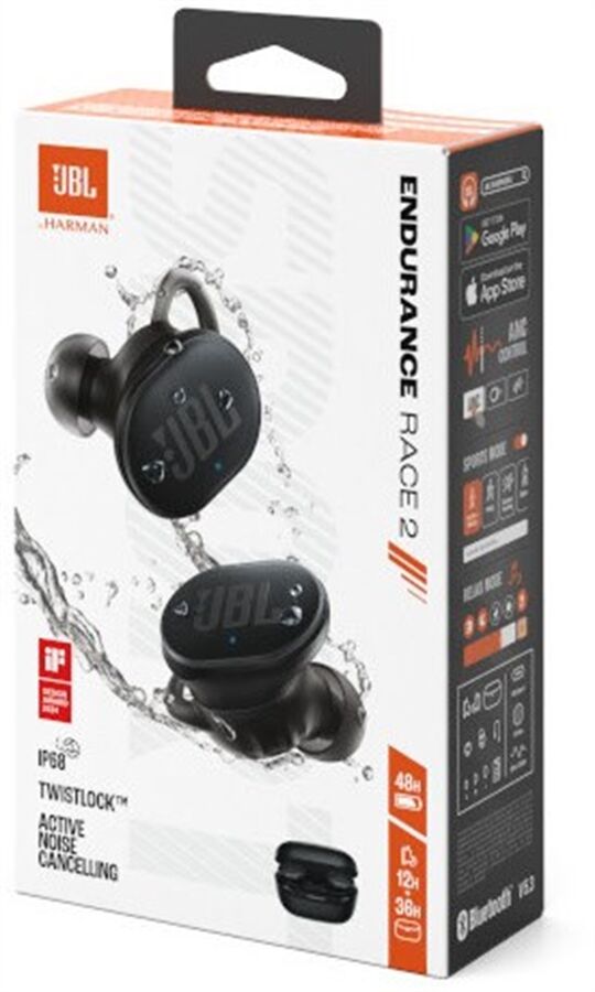 Die JBL Endurance Race 2 sind wie gemacht für dein härtestes Workout. Die Schutzart IP68 bedeutet, dass sie vollständig staub- und wasserdicht sind, mit vollständigem Schutz gegen Fremdkörper. Außerdem können sie in Süß- und Meerwasser tiefer als einen Meter eingetaucht werden. Selbst die Ladebox ist wasserresistent gemäß IPX2. Du kannst sie also auf deinen nächsten Lauf bei Regen mitnehmen.