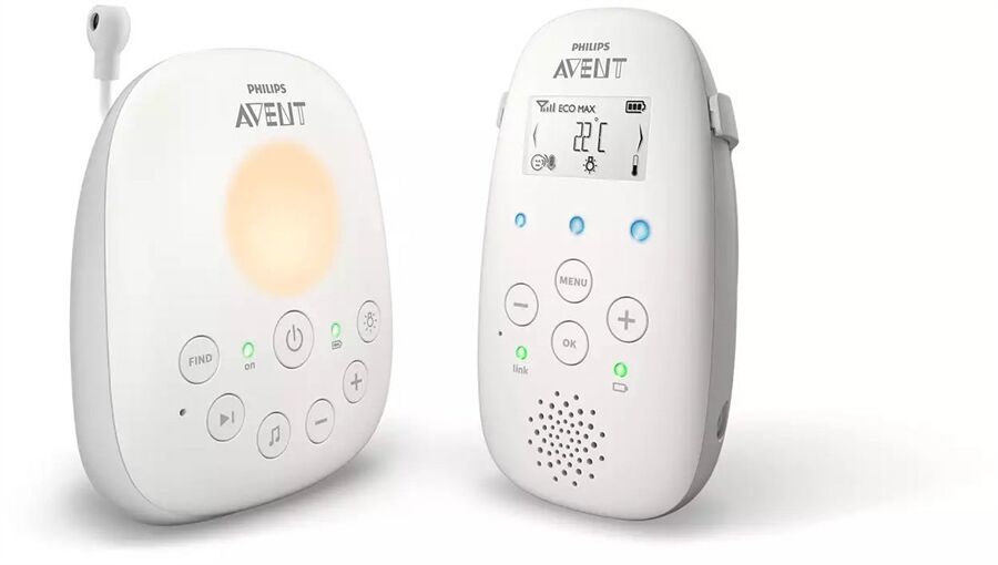 Drei Geräuschpegelanzeigen zum Anzeigen des Geräuschpegels im Zimmer Ihres Babys, auch wenn die Elterneinheit stumm geschaltet ist. Mit der Verbindungsanzeige wissen Sie immer, wann Ihr Babyphone sich in Reichweite befindet und verbunden ist. Die Elterneinheit benachrichtigt Sie, wenn das Babyphone außer Reichweite oder der Akku schwach ist, sodass Sie sicher sein können, dass Sie immer mit Ihrem Baby verbunden sind.