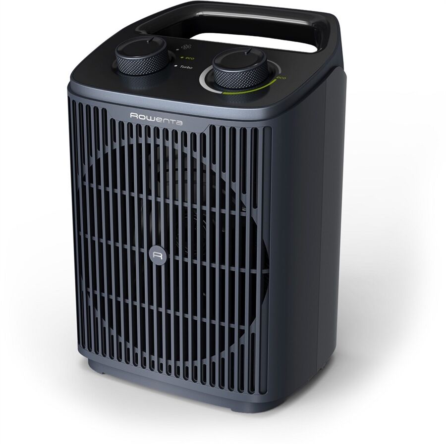 Kompaktes Heizgerät mit Thermostat, Überhitzungsschutz und Kühlstufe.