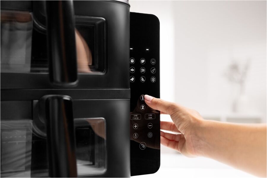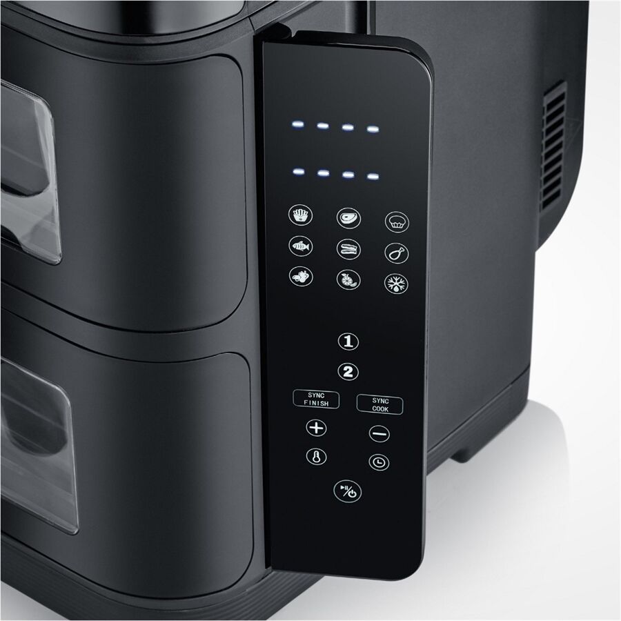 Verdoppeln Sie Ihre Möglichkeiten! Mit Sync Cook kopieren Sie die Einstellungen von einem Korb auf den anderen und bereiten in beiden Körben gleichzeitig Speisen zu. Perfekt für Familienessen oder wenn Gäste kommen - schneller, einfacher, besser!