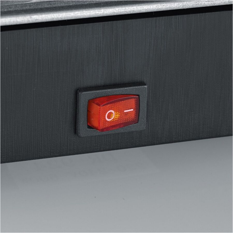 Kompakter Raclette-Grill mit gerillter Grillplatte - Zur kreativen Zusammenstellung von überbackenen Köstlichkeiten - Gesundes Grillen ohne die Zugabe von Fremdfetten dank antihaftbeschichteter Grillplatte, Leicht und platzsparend verstaubar dank kompakter Größe - Einfache Speisenentnahme und Reinigung durch antihaftbeschichtete Pfännchen, Sichere Nutzung dank Ein- und Aus-Schalter mit integrierter Kontrollleuchte und rutschfesten Standfüßen - Leistung: ca. 600 W, Hochwertiges, wärmeisoliertes Kunststoffgehäuse, Leichte Reinigung mit feuchtem Tuch