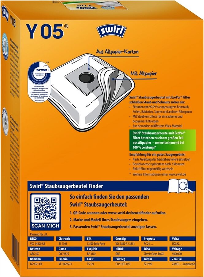 Y 05 EcoPor® Staubsaugerbeutel von Swirl®