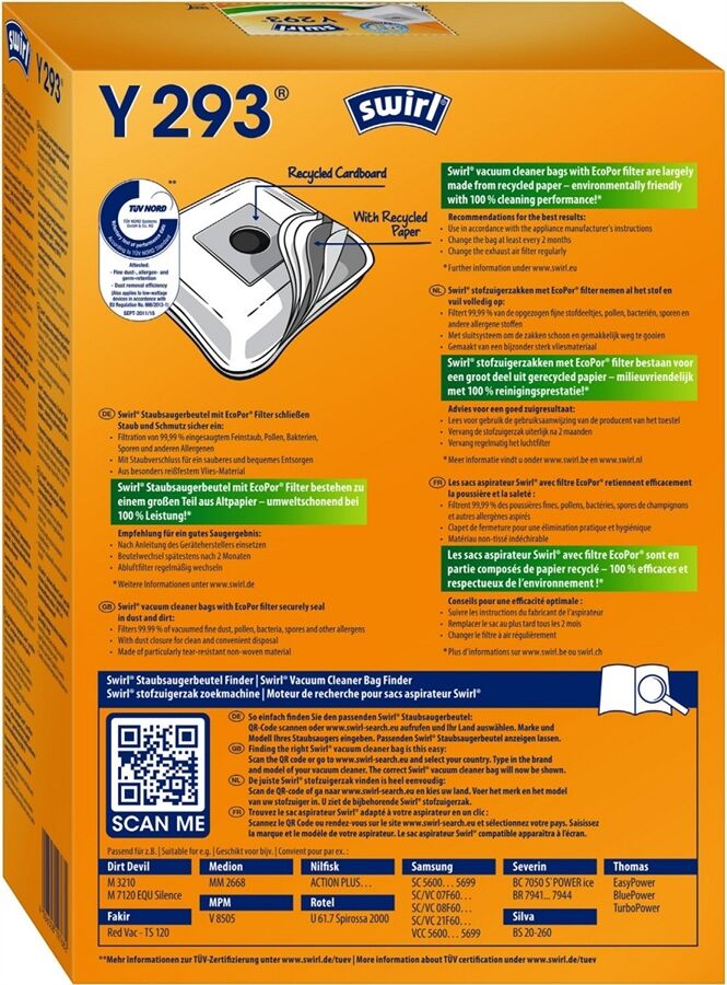 Y 293 EcoPor® Staubsaugerbeutel von Swirl®